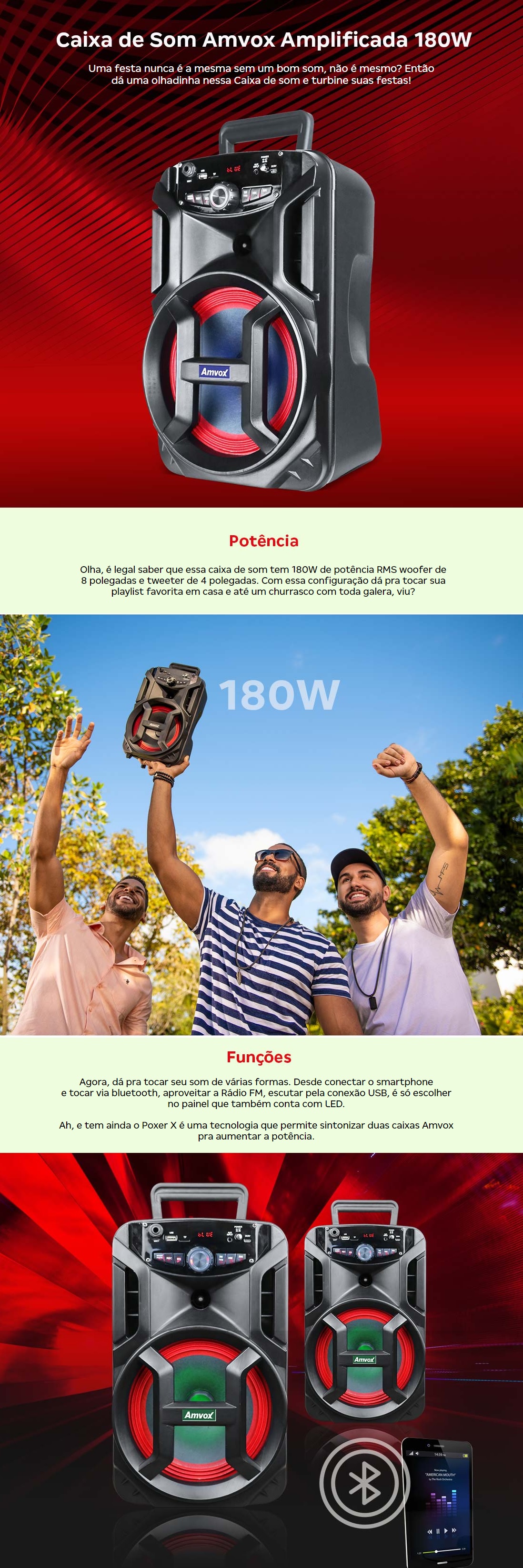 CAIXA DE SOM AMVOX 180W RMS BIVOLT - C/ BLUETOOTH