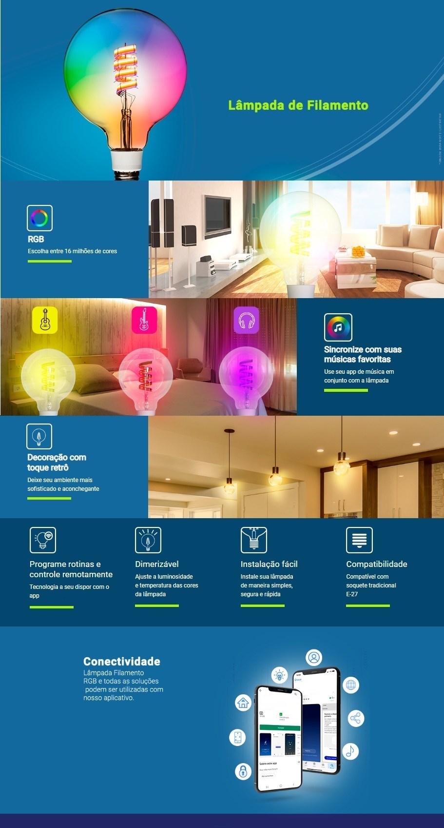 LAMPADA DE FILAMENTO RGB 5.5W RETRO E27 C/ ASSISTANTE VIRTUAL