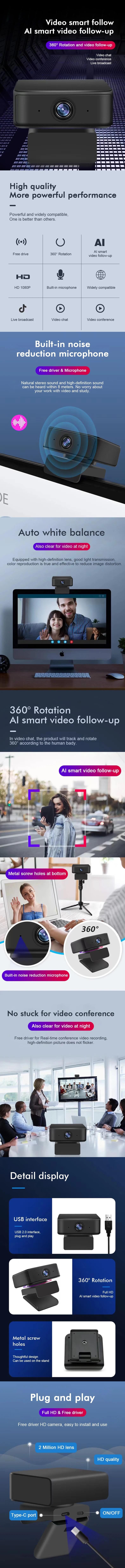 Webcam USB 1080px 2K AutoFoco Microfone e Rastreamento
