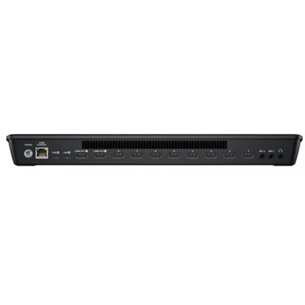 Configurável para 16, 13, 10, 7 ou 4 visualizações, incluindo Programa, Visualização, 8 entradas HDMI, SuperSource, Clean Feed, Media Player, Status de streaming, Status de gravação e Medidores de áudio.