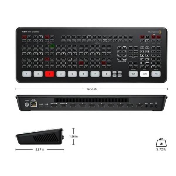 Inclui painel de controle do software ATEM. Também compatível com ATEM 1 M / E Advanced Panel, ATEM 2 M / E Advanced Panel e ATEM 4 M / E Advanced Panel. O ATEM Mini Extreme pode ser configurado usando o utilitário Blackmagic Videohub Hardware Panel Setup para rotear fontes para destinos usando Videohub Smart Control Pro e Videohub Master Control Pro.