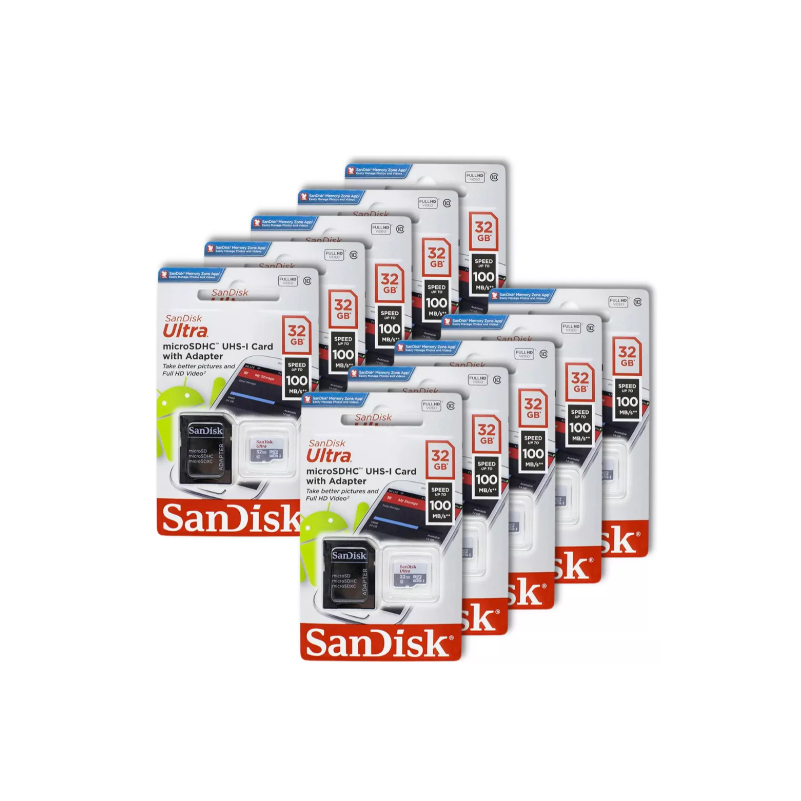 Kit 10 Cartao de Memoria MicroSD 32GB Sandisk Leitura 100Mbs