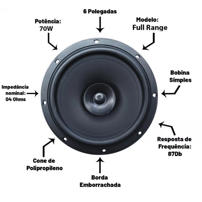Kit Som Auomotivo Radio Mp3 Bluetooth Alto Falante 70W 6 Polegadas