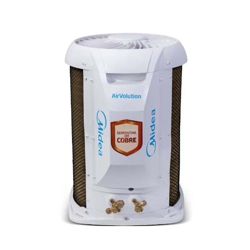 Unidade externa AirVolution com novo design, mais compacta ocupando até 35% menos espaço e maior robustez com serpentina em cobre.