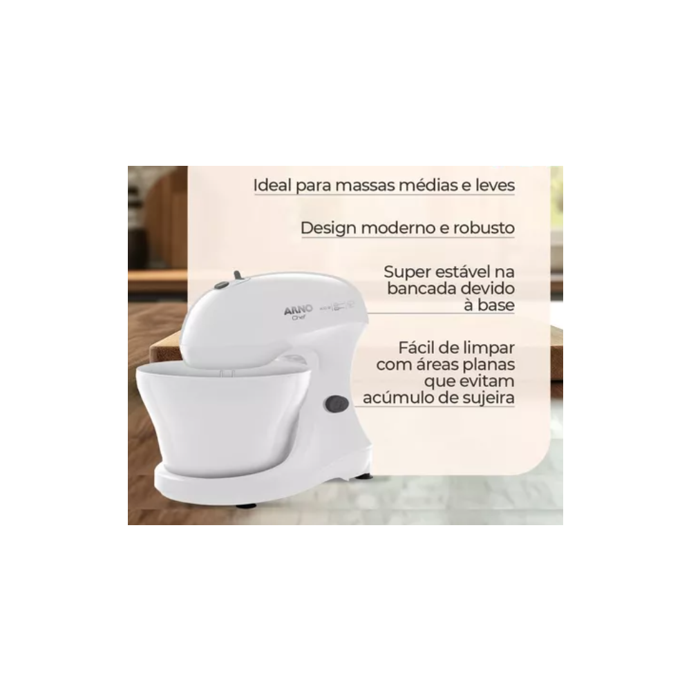 Batedeira Arno Ellegance Cheff 400w 2 Batedores Tigela 5 Litros Branca 127V