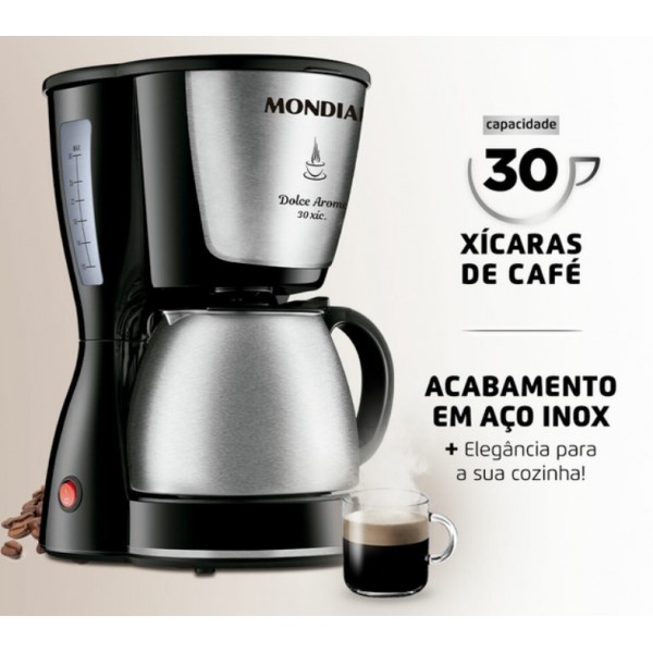CAFETEIRA ELETRICA MONDIAL FAZ 30 XICARAS - 220V - PRETA/INOX