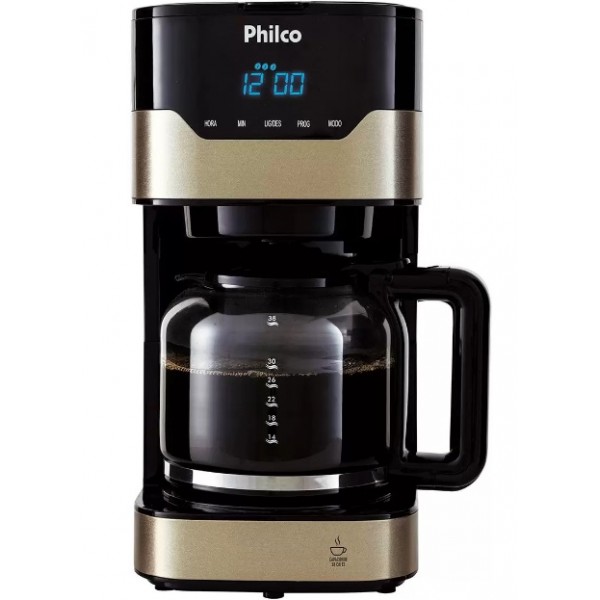 CAFETEIRA PHILCO DIGITAL 800W TOUCH FAZ 38 XICARAS - BLACK/GOLD 220V
