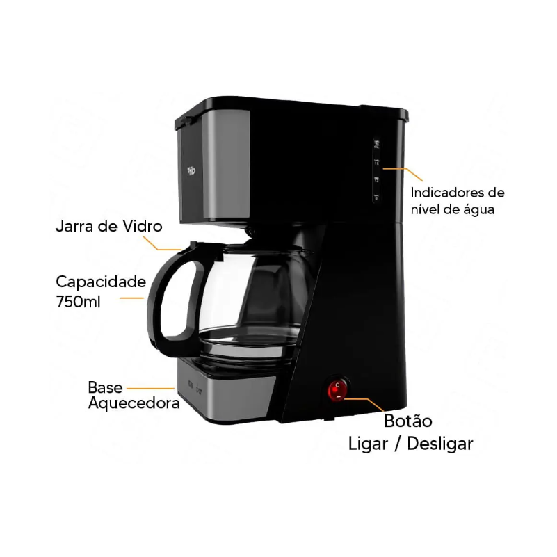 Cafeteira Eletrica Philco 720ml Faz 20 Cafes 650W Preta