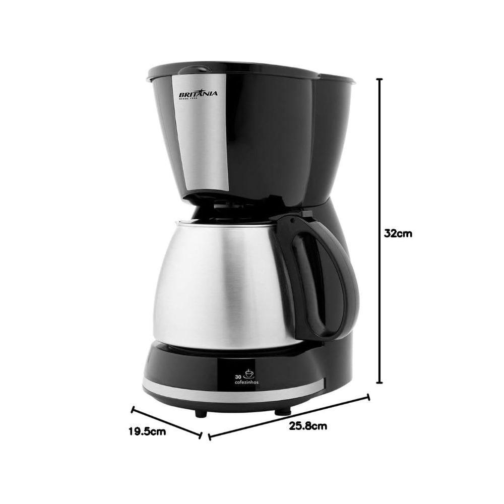 Cafeteira Eletrica 15 Cafes 550W Britania 1.2L inox 127V Jarra em Inox
