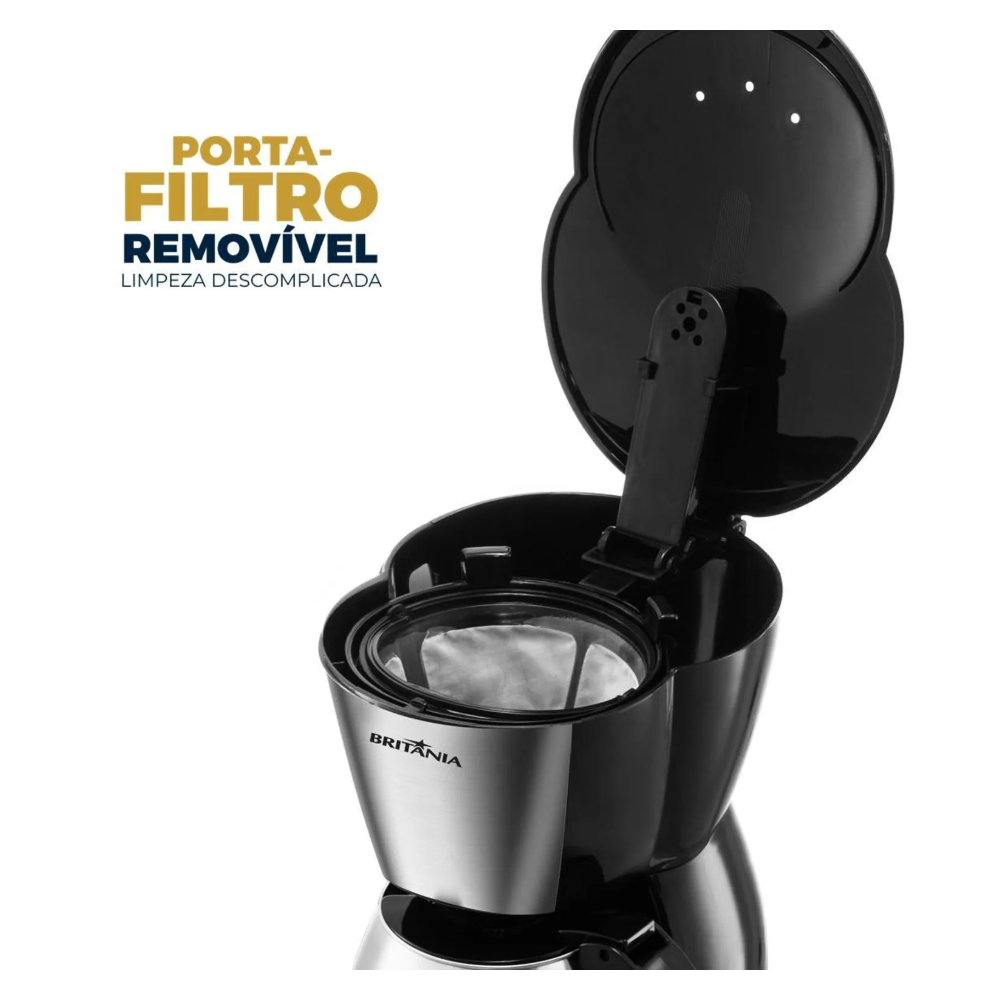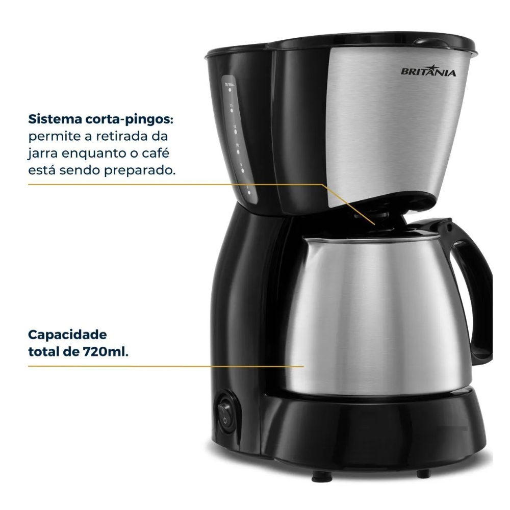 Cafeteira Eletrica Britania 550W Faz 18 Xicaras Jarra Inquebravel Inox