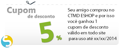 O Programa de Indicação de Clientes do CTMD ESHOP tem como objetivo valorizar e conceder cupons de desconto através de indicações de clientes, gerando premiações em dinheiro (descontos) caso o cliente indicado adquira algum produto ou serviço do CTMD TI. Cada cliente indicado que efetuar uma compra a partir de R$150,00 nesta nesta loja, você, receberá 1 bônus na sua conta.