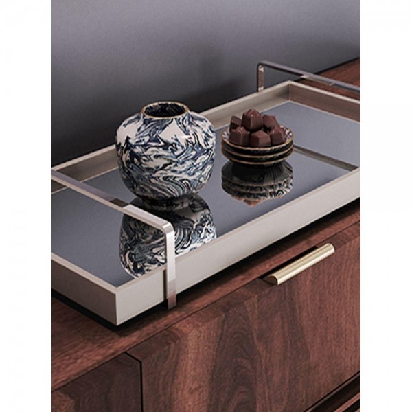 BANDEJA ESPELHADA LAQUEADA C/ ALÇA CROMADA