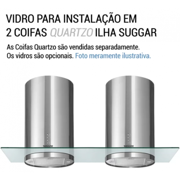 VIDRO P/ COIFA DUPLA SUGGAR TIPO QUARTZO ILHA 90cm