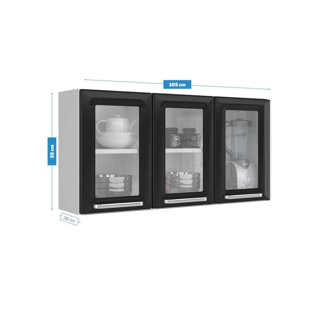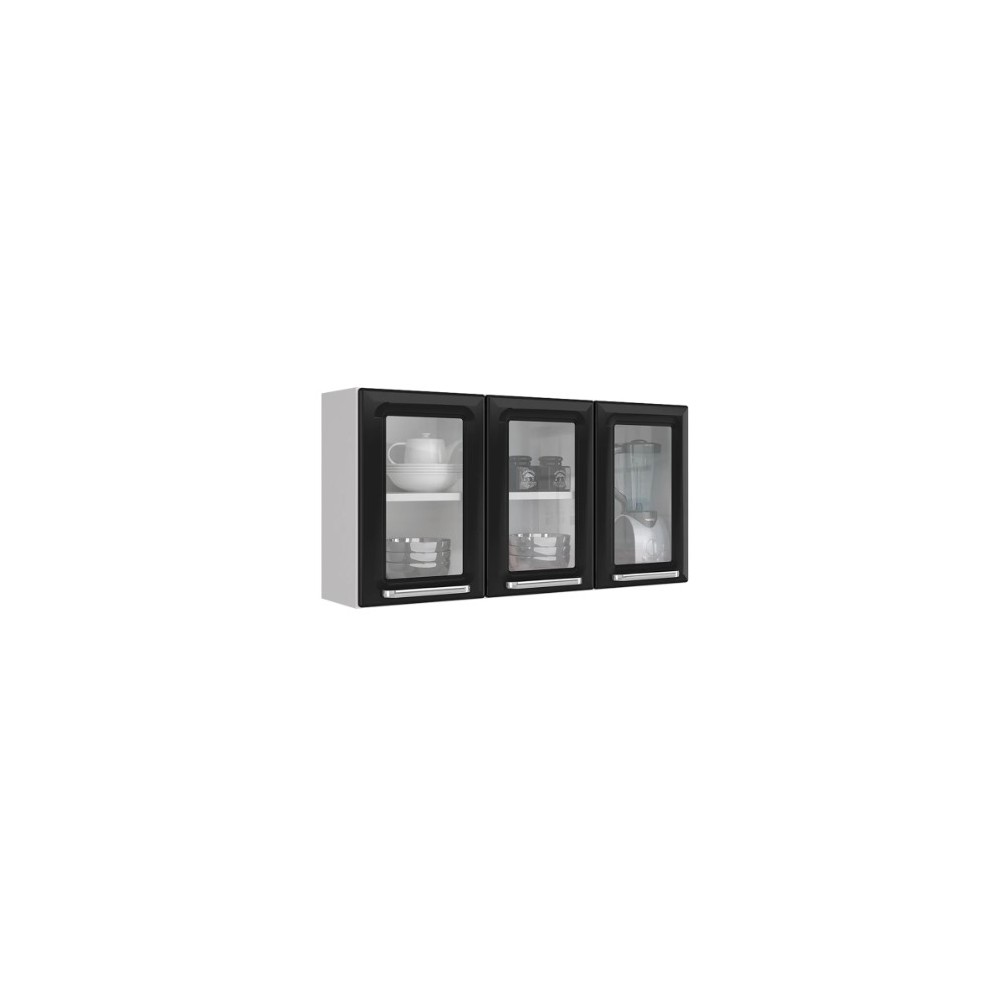 Armario Itatiaia 3 Portas de Vidro Suspenso Preto
