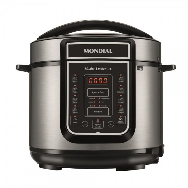 PANELA DE PRESSAO 220V MONDIAL 900W - C/ PAINEL DIGITAL - 5L - INOX/BLACK