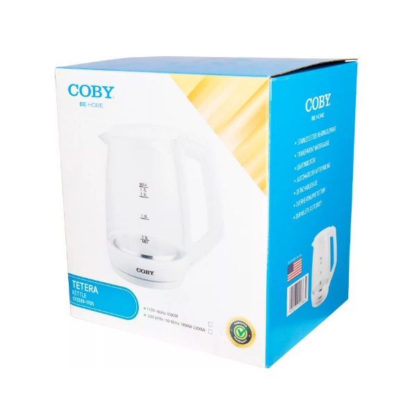 CHALEIRA ELETRICA DE VIDRO COBY 220V 1.7L C/LED AZUL