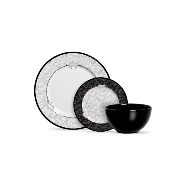 JOGO DE JANTAR 12 PC COM BOWL - PRETO/BRANCO