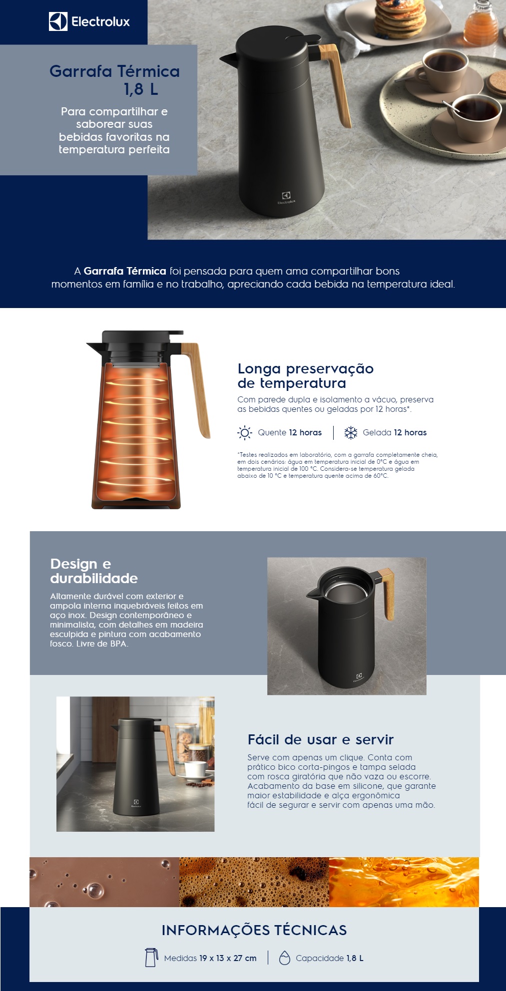 Garrafa Termica Suiça Elecrolux 2L com Bico Corta Pingos Preta
