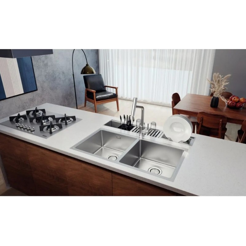 Pia Cuba Tramontina Dupla Quadrada em Inox Luxx platinum