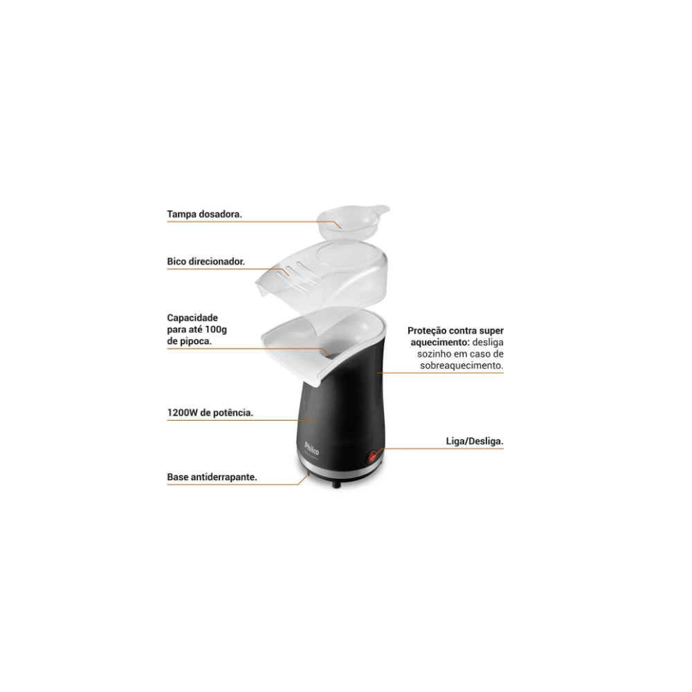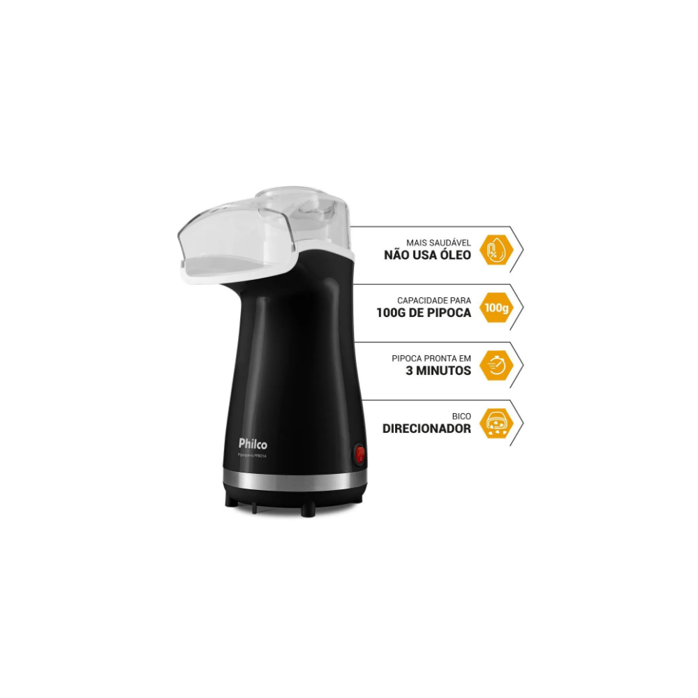 Pipoqueira Eletrica 1200w Philco Tampa Dosadora Luxx Black PPIE01A
