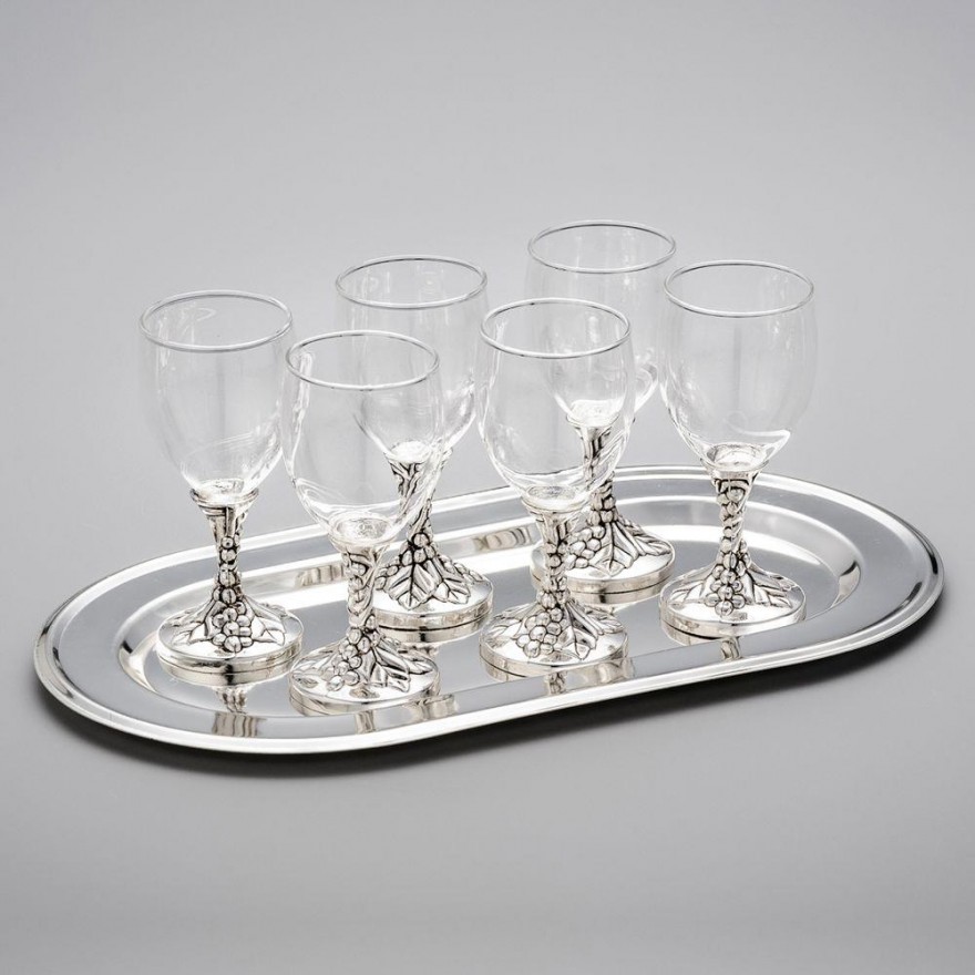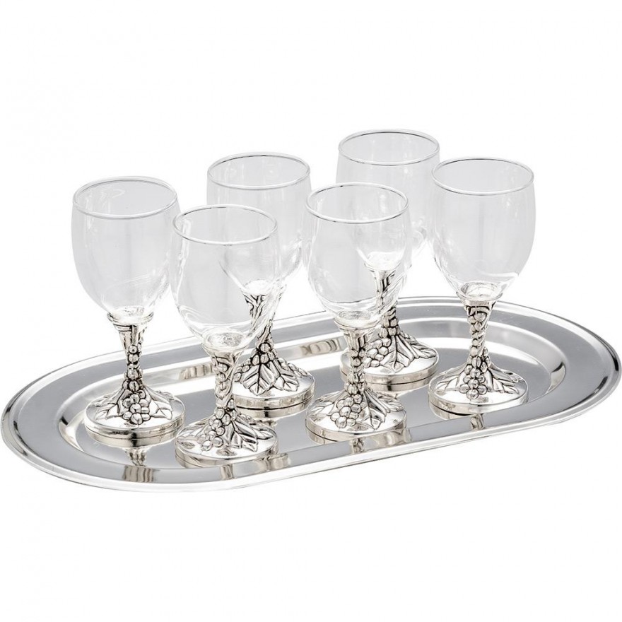 JOGO DE TAÇAS CRISTAL COM BANDEJA DE ZINCO