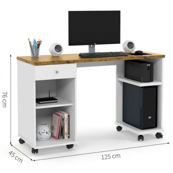 MESA PARA COMPUTADOR MILLY C/ GAVETA BRANCA/NATURE