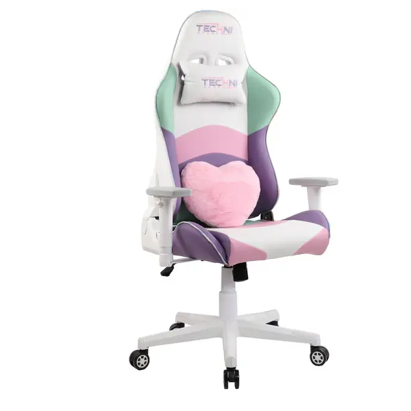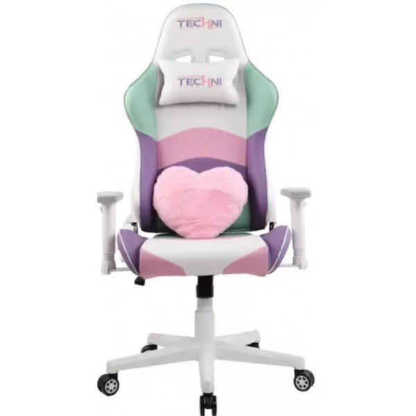 CADEIRA GAMER TECHSPORT RECLINAVEL GIRATORIA C/ APOIO BRAÇOS - LILAS VERDE E BRANCA