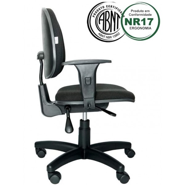 Base Back System que possibilita a regulagem da altura do assento por meio de pistão a gás altura e inclinação do encosto. Portanto, isso significa que, ao decorrer do tempo de uso da cadeira a espuma não venha a afundar ou ficar com marcas por conta do tempo de uso. Por isso a Cadeira Executiva é uma cadeira ideal para o uso contínua de 8 horas por dia. Apresenta também mecanismo giratório com acabamento na cor preto e braços digitador com regulagem de altura. Atende plenamente a norma NR17. Ergonomia e conforto juntos em uma cadeira que completa seus móveis para escritório. A Cadeira Executiva possui base do tipo estrelada fabricada em PP polipropileno. Além de que um tipo plástico bem resistente que garante a estabilidade da cadeira. Conta com 5 rodízios também em PP, o que facilita a movimentação da cadeira pelo ambiente. Portanto, a Cadeira Executiva ainda tem o ajuste de altura da cadeira. Então feita por controle manual, através de uma manipula que aciona o pistão de gás. Além de que move o percurso da cadeira de 100mm à 150mm da altura normal da cadeira executiva simples, a fim de proporcionar mais conforto e comodidade à quem utiliza.