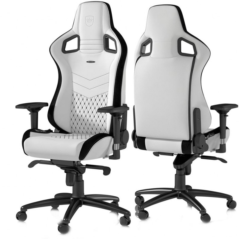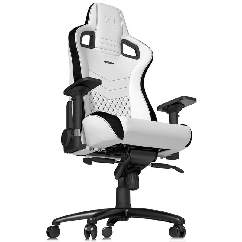 A base das noblechairs é uma estrutura em aço, que proporciona estabilidade total da estrutura. Está envolta por estofado esgonômico, feito de espuma firme e estável, cuja a alta densidade (55%) permite que qualquer uma das noblechairs mantenha sua forma, mesmo após um uso prolongado, assim como com maior peso corporal, para se adaptar à posição sentada imediatamente. O material de 'células abertas' é especialmente respirável e cria uma agradável regulação de clima ao mesmo tempo Suas rodas de 60mm são cobertas em poliuretano além de um núcleo em nylon. Com isto, as rodas da cadeira são distintamente mais macias e portanto, igualmente adequadas para pisos duros e pisos macios. As cadeiras Gamer da noblechair oferecem um ajuste soberano a fim de se adaptarem com flexibilidade às necessidades do utilizador. Ela possui um gas-lift de classe 4, com altura regulável e várias posições confortáveis poderão ser alcançadas através da função de reclinação, com o seu ângulo constante entre o encosto e o assento. A posição de inclinação pode ser bloqueada e a tensão de inclinação pode ser dinamicamente ajustada com uma alavanca na zona inferior do assento.