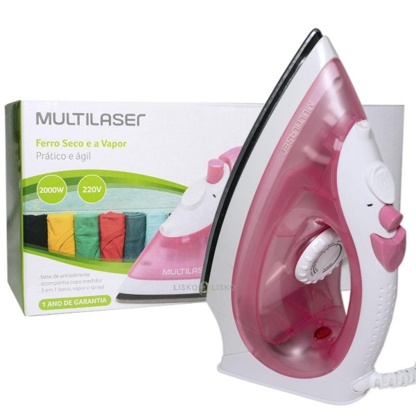 FERRO DE PASSAR A VAPOR MULTILASER PINK 1200W 220V