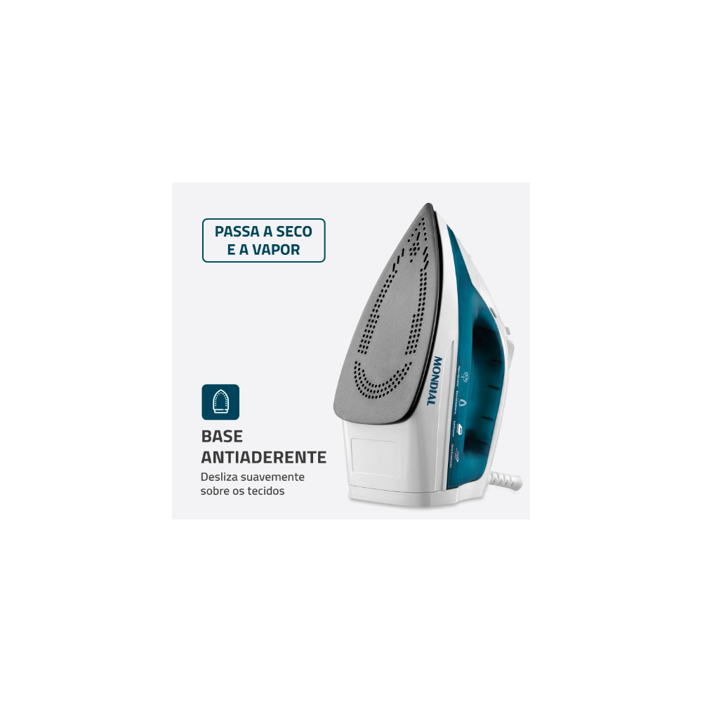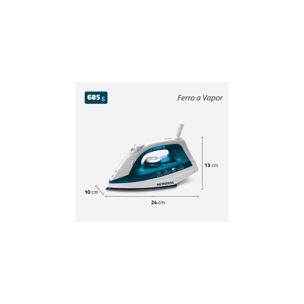 Ferro de Passar a Vapor Mondial 1200w com Spray Branco e azul