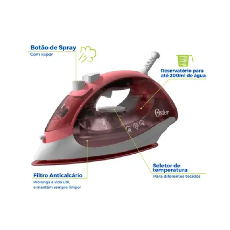 Ferro de Passar a Vapor Oster 1200W Antiaderente AeroCeramic Luxx Red