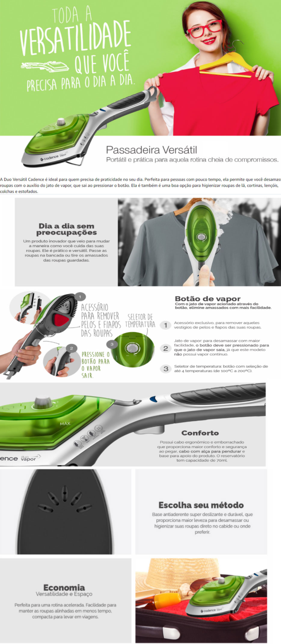 Passadeira a Vapor Cadence 800W 127V Luxx Green