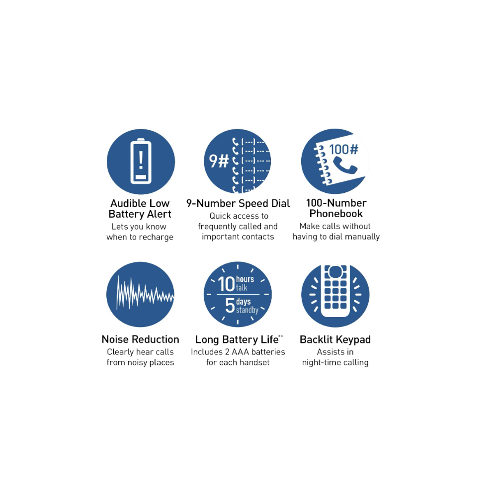 Identificador de chamadas falante (fone sem fio) | Sim Requer assinatura de um serviço de identificação de chamadas oferecido pela sua operadora/companhia telefônica. A pronúncia do nome pode variar. |