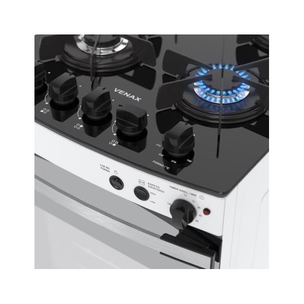 FOGAO A GAS 4 BOCAS VENAX - BRANCO/PRATA - 700W 52L