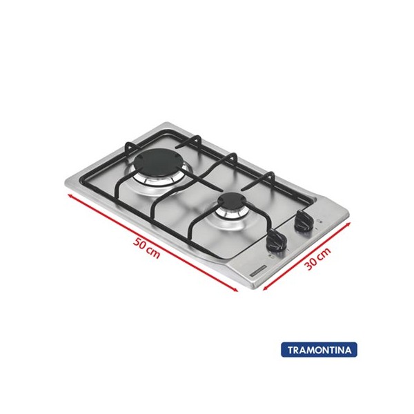 FOGAO COOKTOP A GAS TRAMONTINA 2 BOCA - AÇO INOX - BIVOLT - 5W