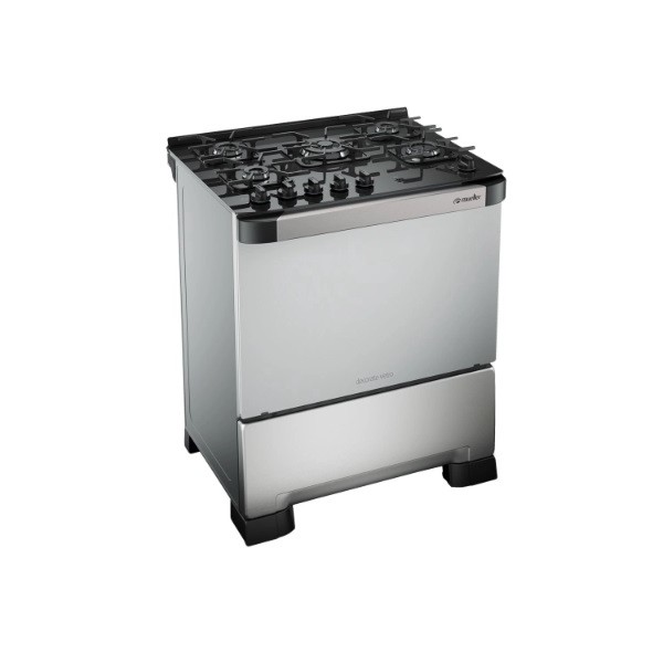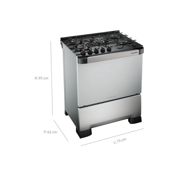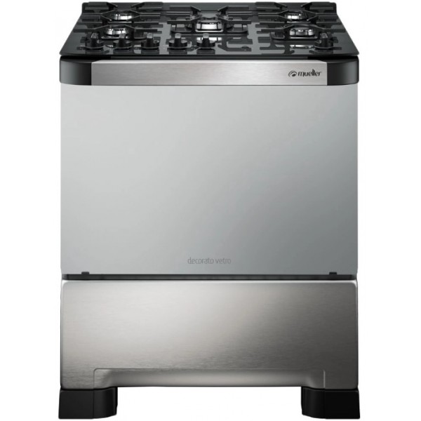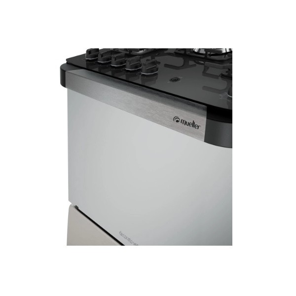 FOGAO A GAS 5 BOCAS TRIPLA CHAMA BIVOLT MUELLER 3700W - INOX - MESA DE VIDRO