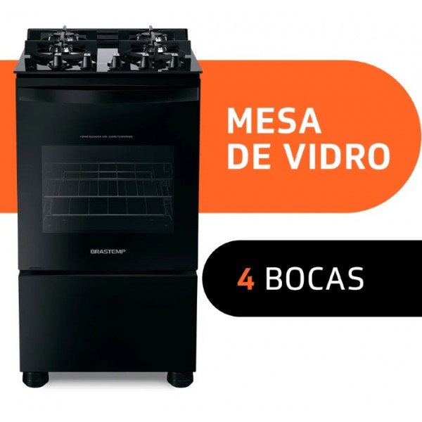 FOGAO 4 BOCAS MESA VIDRO BIVOLT BRASTEMP - PRETO