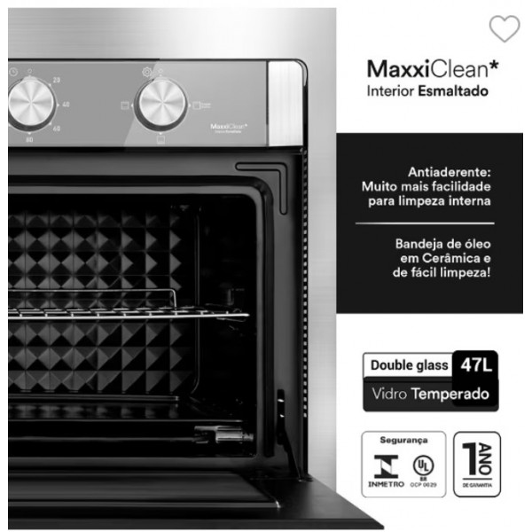 FORNO ELETRICO DE EMBUTIR EOS 47L PORTA DE VIDRO 1500W