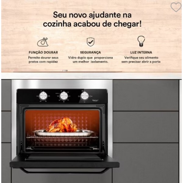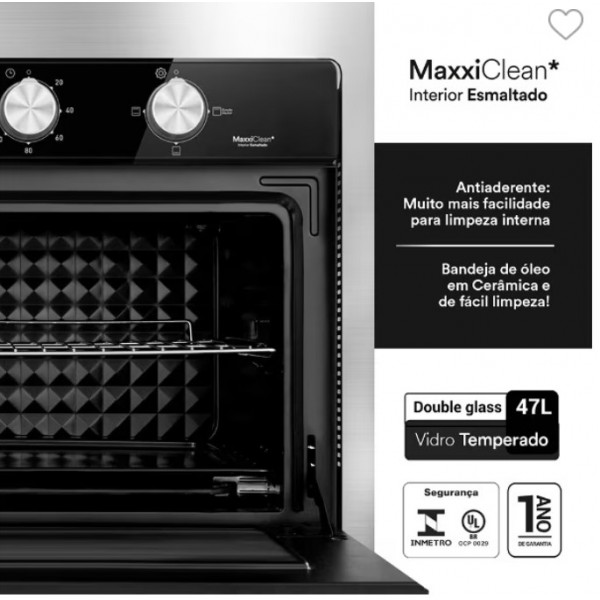 FORNO ELETRICO DE EMBUTIR EOS 47L PORTA DE VIDRO 1500W - PRETO INOX