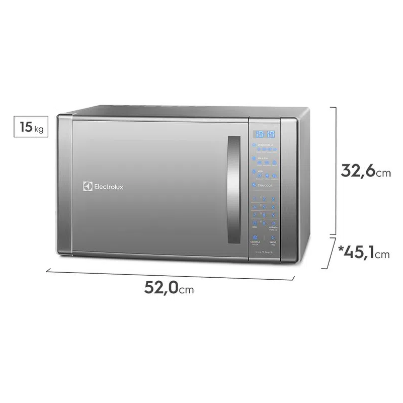 Sua cozinha merece um eletrodoméstico prático e funcional. Com 1350W de potência e função Grill, o Micro-ondas Electrolux 31L fará com que suas refeições fiquem prontas e com a textura perfeita em poucos minutos. Com um simples toque no painel blue touch, você escolhe como quer preparar seus alimentos. Liberdade para todos os momentos na cozinha. Se quiser dar aquele toque de sabor a mais para suas receitas, aproveite os benefícios da função grill e deixe aquele filé de frango à milanesa crocante e delicioso. E na hora da limpeza tudo fica mais fácil, pois conta com o interior feito em aço inox, toda a sujeira dos respingos de alimentos pode ser facilmente removida. Seu novo Micro-ondas Electrolux vai estar sempre limpo e brilhante!