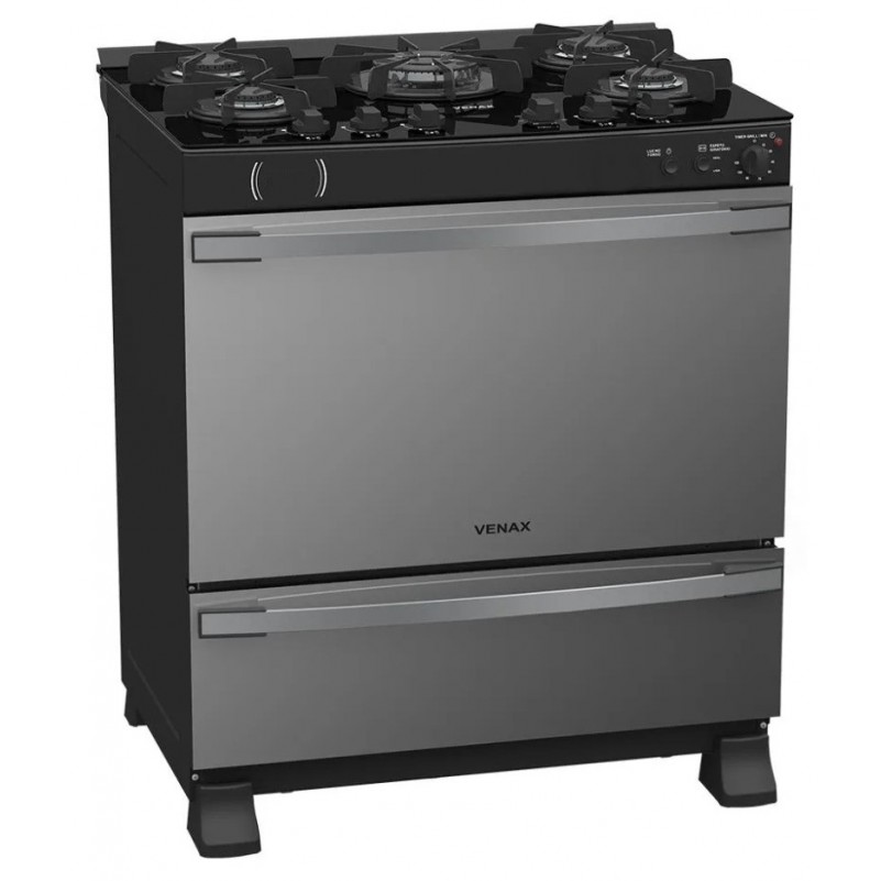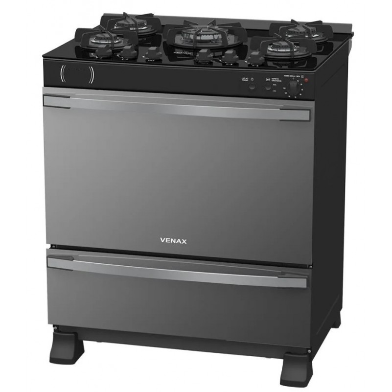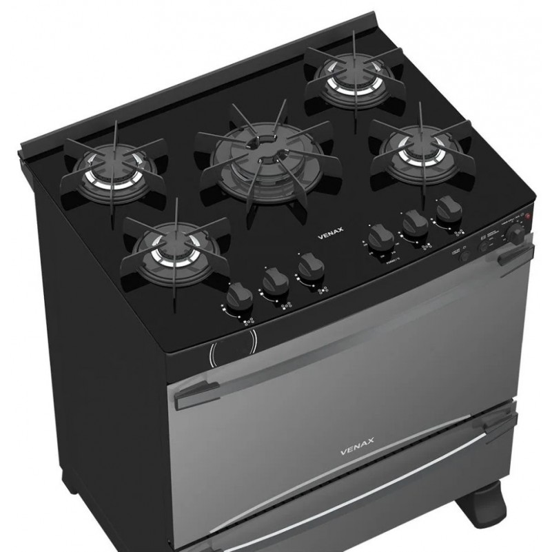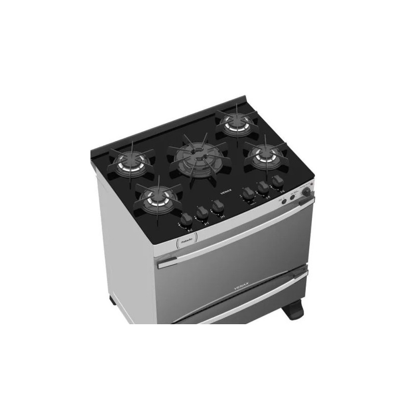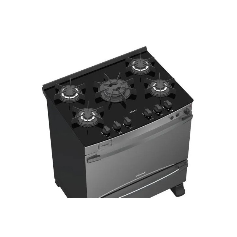 Fogao a Gas 5 Bocas Venax com Grill Acendimento Automatico Mesa de Vidro