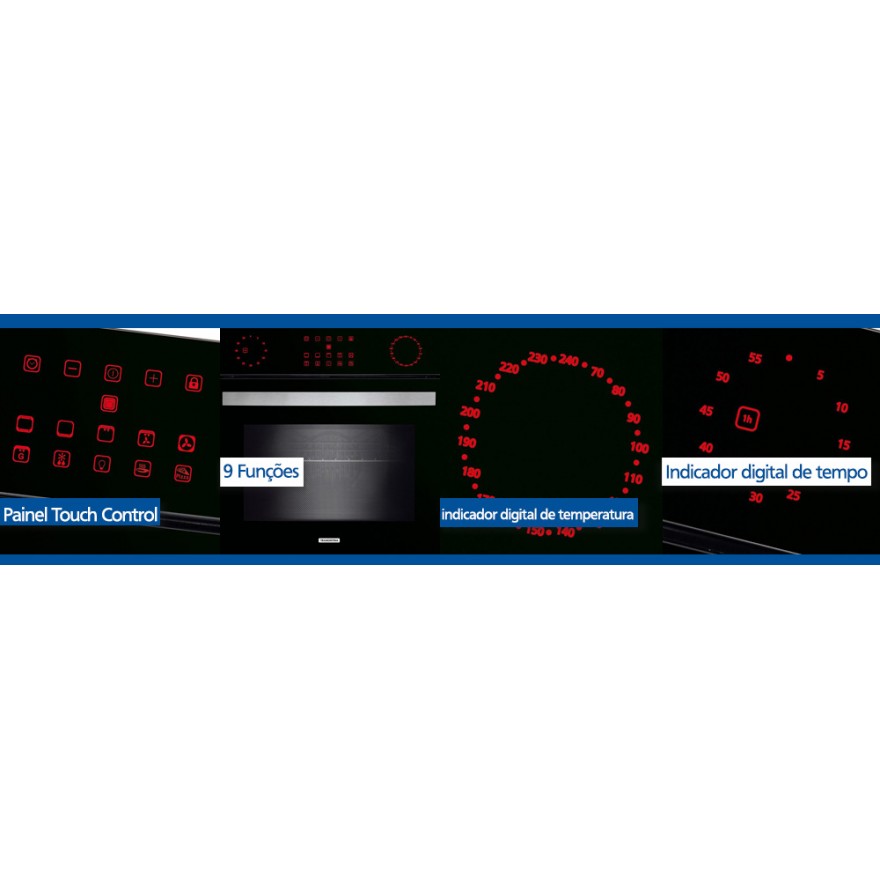 FORNO DE EMBUTIR TRAMONTINA TURBO GRILL 55L TOUCH 2170W PRETO 220v