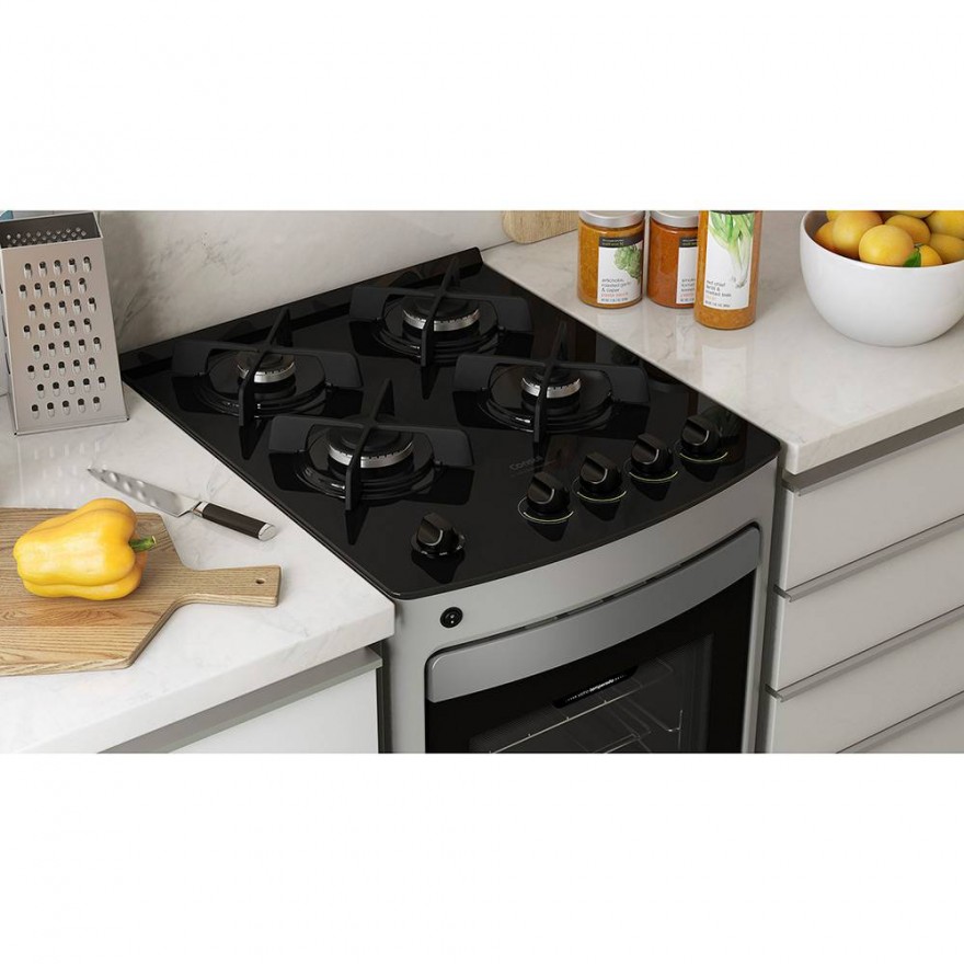 FOGÃO 4 BOCAS CONSUL INOX 58L Queimador UltraChama Automático Mesa de Vidro
