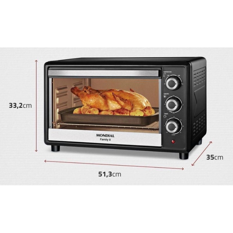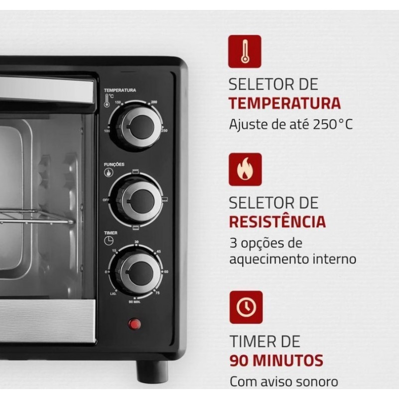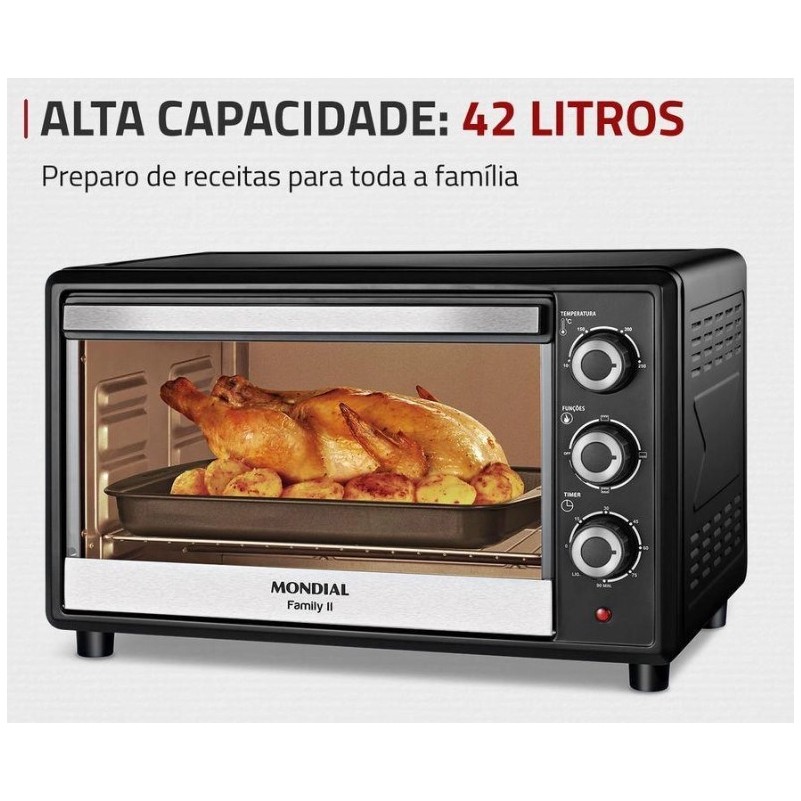Forno Eletrico 42L Mondial 1600W Grelha Timer 220v Preto Inox