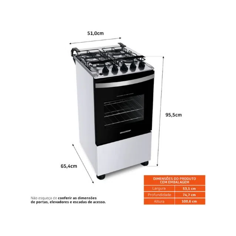 Fogao a Gas 4 Bocas Brastemp com Acend Automatico Branco