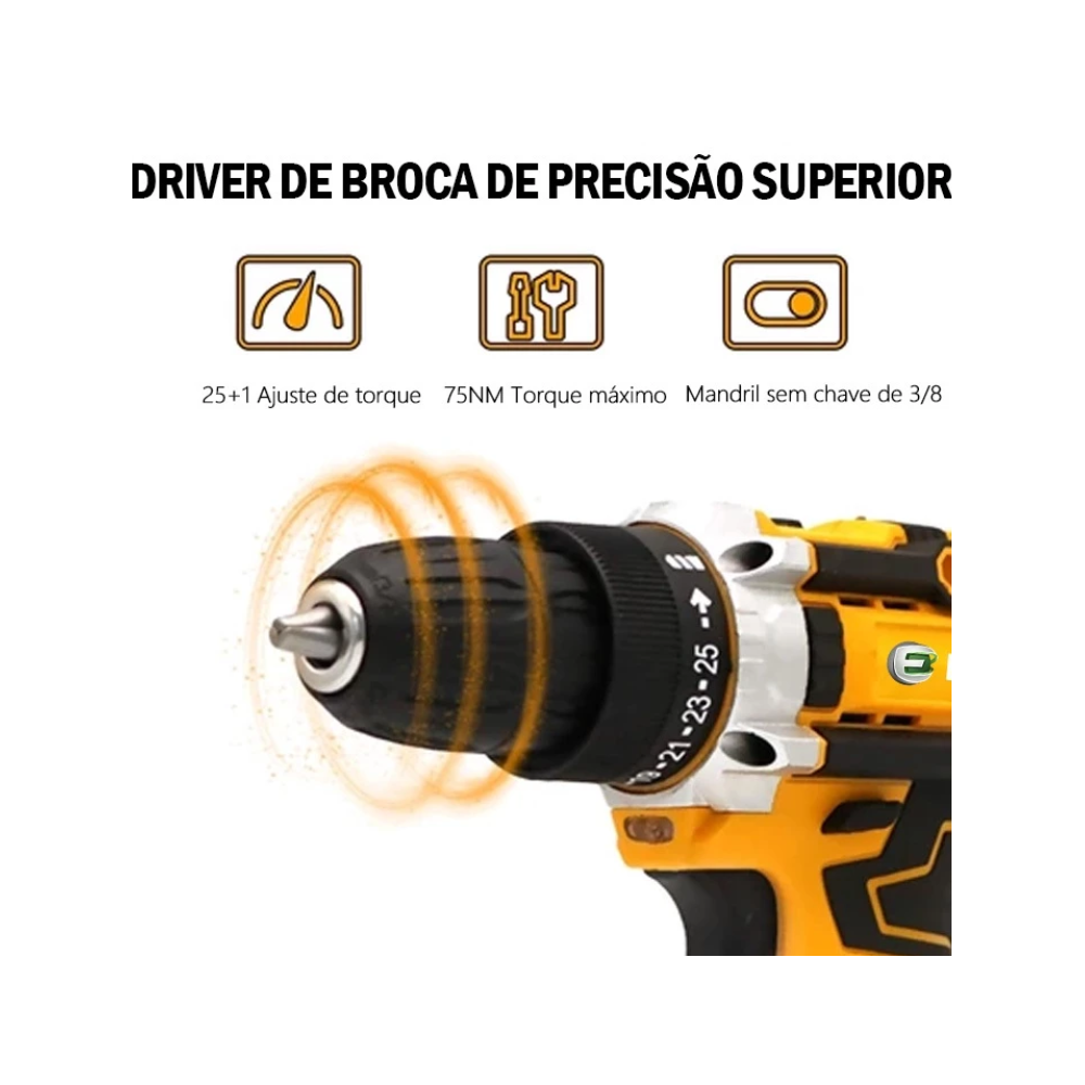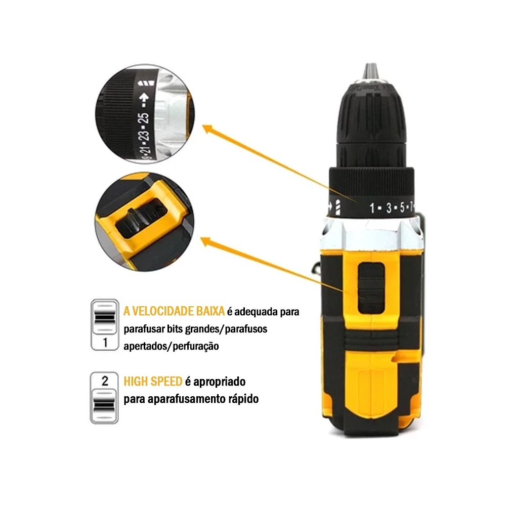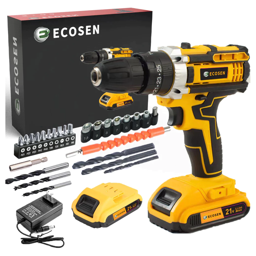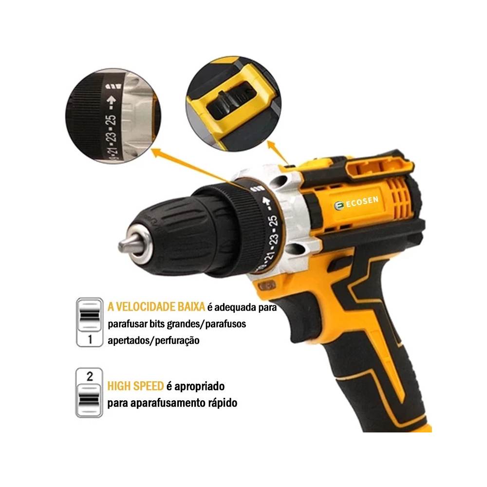 Furadeira Parafusadeira 21v Ecosen 45Nm Maleta 30 Peças Amarela