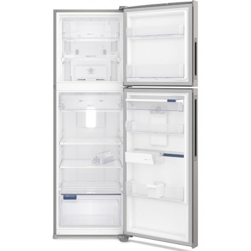 A Geladeira Electrolux Frost Free Duplex com AutoSense cor Inox Look 409L é uma geladeira moderna, elegante e eficiente, ideal para preservar seus alimentos por mais tempo e com menor consumo de energia. A Tecnologia AutoSense utiliza Inteligência Artificial para controlar automaticamente a temperatura da geladeira, aprendendo sobre sua rotina diária e prolongando a vida dos alimentos por até 30% mais tempo. Assim, seus alimentos serão conservados com todo o sabor natural. A Tecnologia Inverter mantém a temperatura do motor mais estável, garantindo condições ideais para preservar seus alimentos. Além disso, essa tecnologia evita picos de energia, resultando em uma economia de até 30% de energia com classificação de eficiência A. A geladeira conta com o recurso FoodControl, que permite a você controlar o prazo de validade dos alimentos, evitando desperdícios. Esse recurso é especialmente útil para frutas, vegetais e laticínios que precisam de mais atenção. A Gaveta HortiNatura possui uma vedação especial que garante a umidade ideal para manter frutas e vegetais frescos por muito mais tempo, preservando o sabor natural até 2x mais. O sistema FastAdapt oferece prateleiras deslizantes que podem ser configuradas de diversas formas, permitindo armazenar alimentos de diferentes tamanhos e formatos com facilidade. O Water Dispenser permite desfrutar de água filtrada e fresca diretamente da geladeira, sem precisar abrir a porta, proporcionando conforto e qualidade. O Separador de garrafas e porta-condimentos ajuda a organizar melhor o interior da geladeira, oferecendo um pequeno recipiente para guardar temperos. Além disso, essa geladeira possui a opção de incluir o Filtro TasteGuard, vendido separadamente, que elimina até 9x mais rápido os maus odores causados por bactérias, garantindo uma geladeira sempre fresca e higiênica.