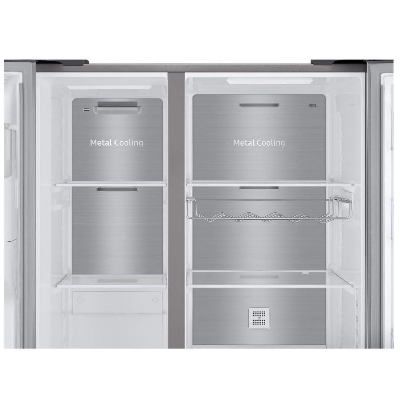 Mantenha sua comida fresca, mesmo se você abrir e fechar a porta constantemente. A superfície Metal Cooling na parede traseira ajuda a manter a temperatura interna ideal. Ela retém o frio, previne a perda de ar frio quando a porta é aberta e ajuda a rapidamente recuperar qualquer temperatura perdida quando a porta é fechada.