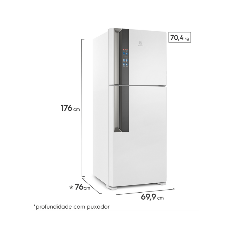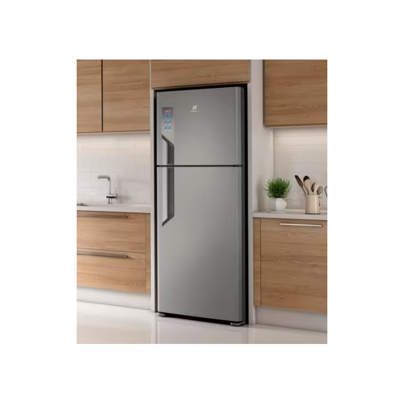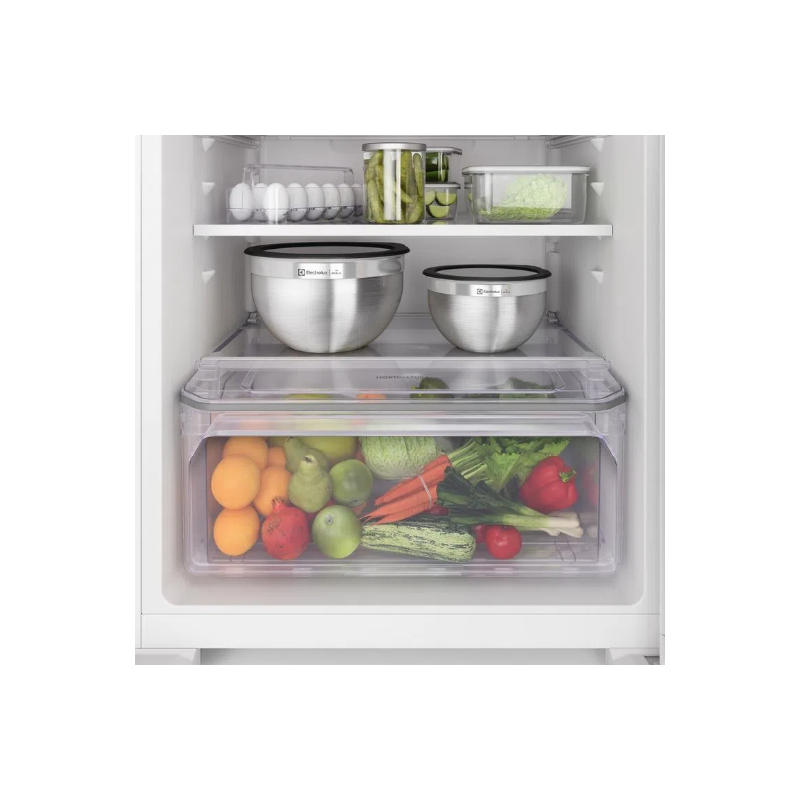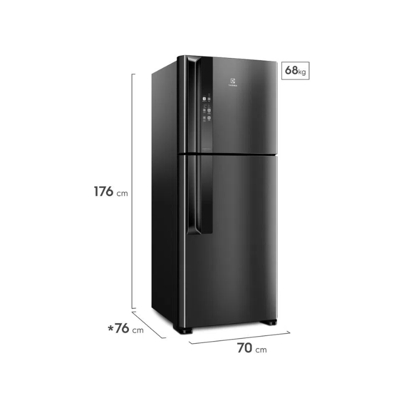 O Refrigerador Frost Free da Electrolux é espaçoso, multifuncional e moderno. O Refrigerador Electrolux faz com que seu dia fique bem mais prático. Equipado com um freezer espaçoso, ele assegura o congelamento rápido da comida, ajudando a conservar melhor seus alimentos. Seus diversos compartimentos, como gavetão para legumes e prateleiras retráteis no freezer facilitam a organização interna. Para modernizar sua rotina diária e armazenar seus alimentos de maneira prática, conte com a Geladeira Electrolux Freezer Frost Free Black Inox Look com Tecnologia AutoSense IF55B, agora em tons de preto*, a tendência do momento. Equipada com a Tecnologia AutoSense, essa geladeira Electrolux utiliza inteligência artificial para controlar a temperatura automaticamente, prolongando a vida dos alimentos por até 30% mais tempo. Com a Tecnologia Inverter, economize até 45% de energia elétrica através de uma maior estabilidade de temperatura. Some a isso a gaveta HortiNatura, que preserva o frescor, textura e sabor dos vegetais e frutas por até 2x mais tempo***, proporcionando maiores benefícios a saúde e reduzindo o desperdício. Conte também com o maior freezer do mercado, que oferece 128L para guardar alimentos e embalagens de diferentes tamanhos. Além do Sistema Fast Adapt e das prateleiras reversíveis e retráteis que permitem 43 configurações internas diferentes, otimizando o espaço de acordo com as suas necessidades. Facilitando ainda mais seu dia a dia, produzir e retirar gelo agora é simples, graças ao IceMax, compartimento de gelo removível que possui exclusivo sistema sem respingos e sem mistura de odores no interior do seu freezer. Nova Geladeira Electrolux com tecnologia #NãoJogaNadaFora. Maior freezer do segmento Top Freezer Combinados Frost Free até 500 litros conforme tabela de eficiência energética de 29/04/2021 PBE (Programa Brasileiro de Etiquetagem).